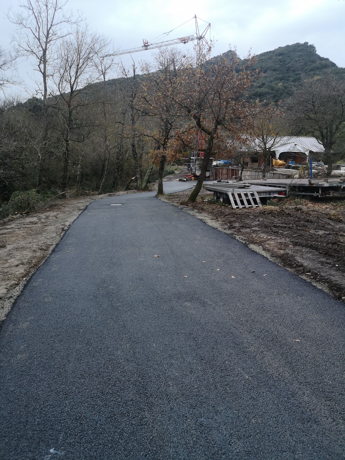 Chantier de création de chemin d'accès et d'aménagement en enrobés de la propriété dans le village de boisset dans l'herault par goudronnage grand sud, si vous voulez un devis, appelez moi au 06 52 95 06 04 je vous ferai un devis avec plaisir à des tarifs attractifs
