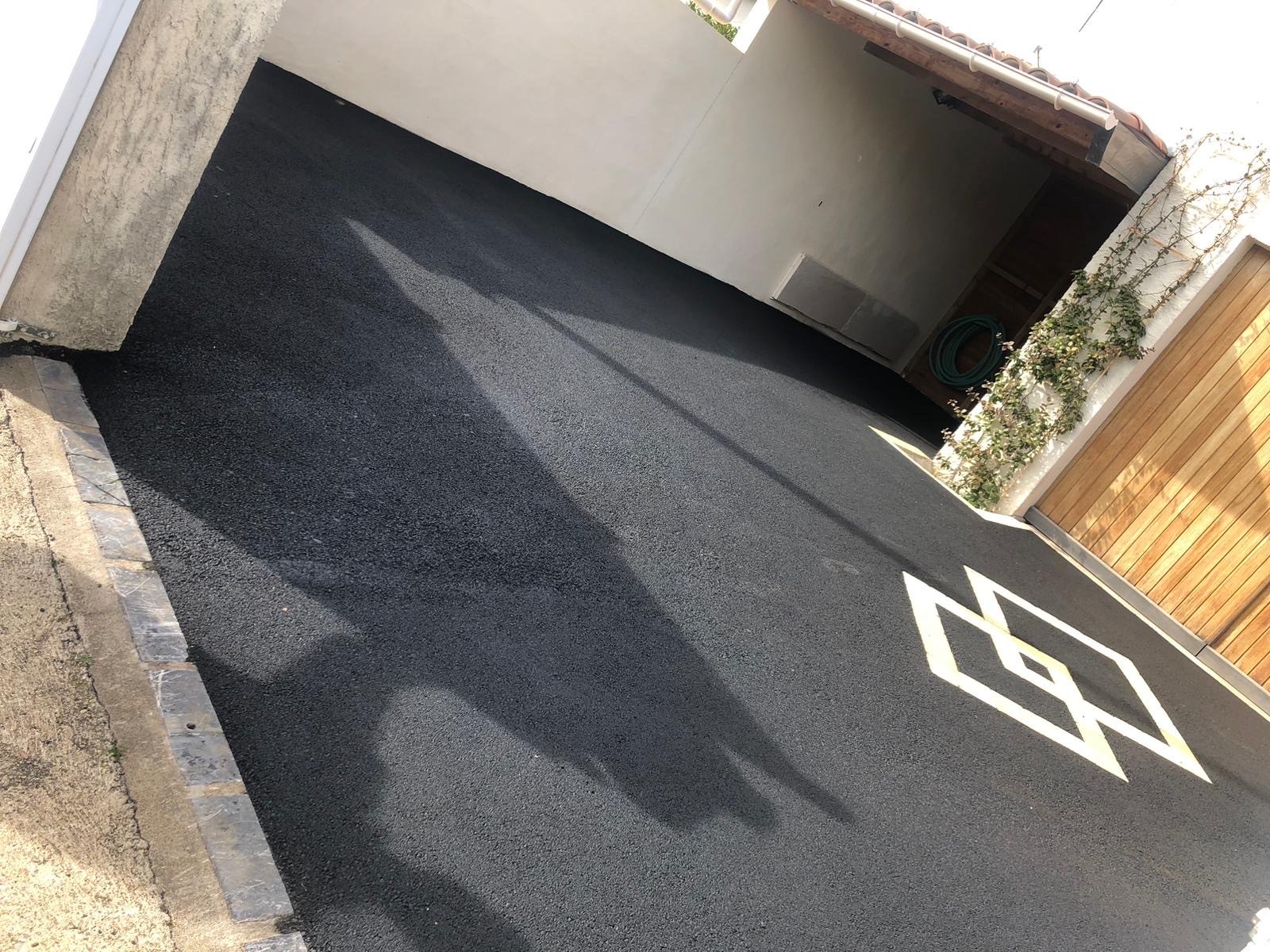 Pose des enrobés à chaud manuellement en fin de chantier sur une résidence en sous-sol sur la ville d’Agde , finissions au top goudronnage grand Sud à votre service Réalisation d'une allée en enrobé à chaud, résultat en...